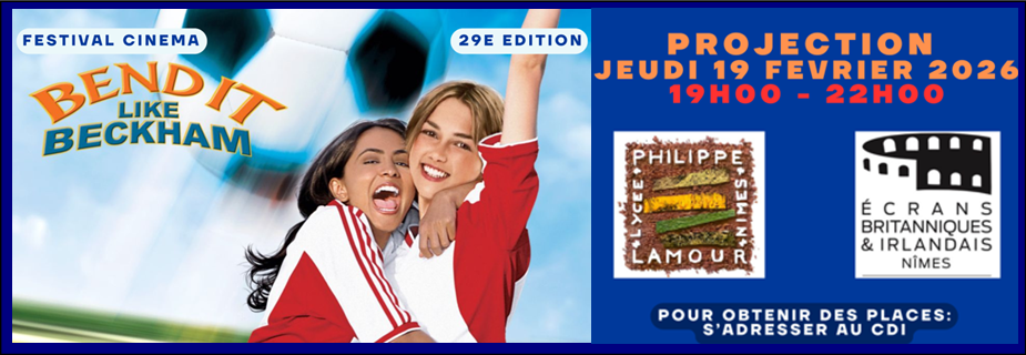 Soirée-projection spéciale du film "Bend it like Beckham", de Gurinder Chadha (2002) le jeudi 19 février de 19h00 à 22h00 (en VO sous-titrée Français).